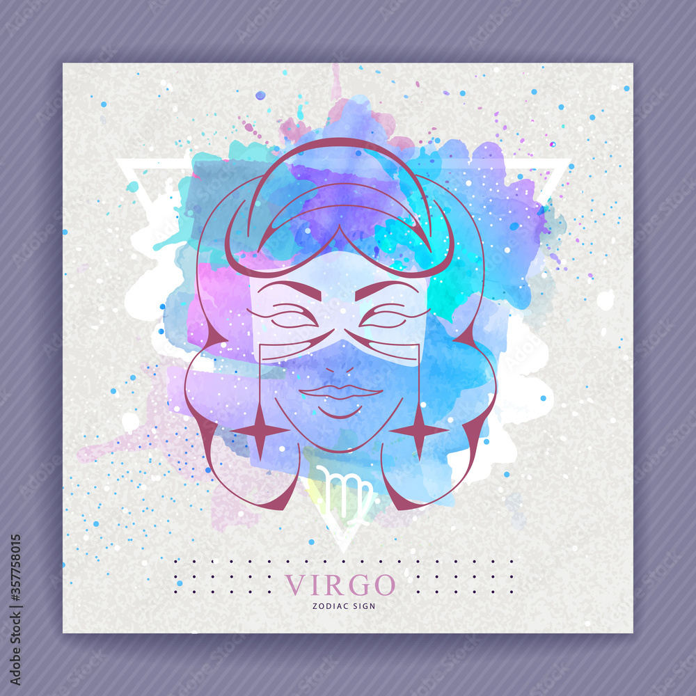 Modern Magic Witchcraft Card With Astrology Virgo Zodiac Sign On Artistic Watercolor Background Woman Head Logo Design Stock Vector Adobe Stock